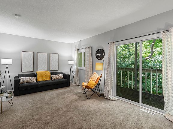 Renovated in 2022 with upgraded electrical service, water heater, new windows, kitchen appliances, quartz countertops, backsplash, new bathroom vanities and faucets and recently freshened up paint, this 3 bedroom, 3 bath, 2 stall garage townhouse is value packed! Enjoy two main living areas and a walkout lower level near trails. The home backs up to wooded privacy. Your outdoor spaces include 2 balconies, a front courtyard, and a patio off of the walkout lower level. Enjoy the association's pool, tennis courts, community room and playground. Prime location near 694, dining, parks, trails, recreation and entertainment. Dogs and cats are allowed but must be licensed with the City of Fridley. Rentals allowed but restrictions apply. Quick close possible.