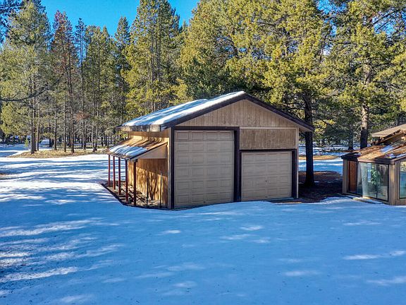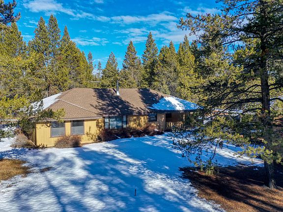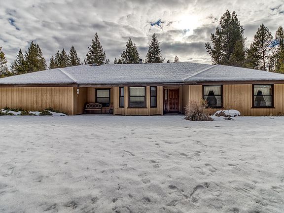 Very private home on 5 acres just off Century Drive. Single level with 3 Bedrooms and 2 Baths, 1860 sq. ft built in 1988. Large kitchen and eating area with separate dining room. Family room with vaulted ceiling and free standing wood stove. Laundry/ mud room with pantry and lots of storage. Back deck with built in wood burning pizza oven. Lawn around the home with sprinkler system, the rest of the property is level and treed. Property is totally fenced with front gate. Two car attached garage. There are 2 private wells a shallow well which is primarily used for the house and has a filter. The deep well is primarily used for irrigation. Heated shop building with office is 1400 sq. ft, wired for 220 and built in air compressor, one 8' garage door. Separate 680 sq. ft RV garage with pull thru 10' doors. Less than a half hour to Mt Bachelor or a meal in SunRiver just a 10-minute drive. .