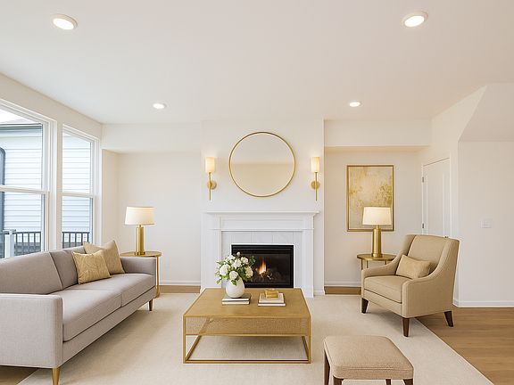 Welcome to this brand-new, sun-filled 3-bedroom, 2.5-bath townhome in Ann Arbor! The open-concept floor plan features a spacious living room with 9-foot ceilings, large windows, and a cozy fireplace. An elegant sunroom leads to a private deck, perfect for relaxing or entertaining. The first floor showcases engineered hardwood flooring, while the second floor is carpeted for comfort. The modern kitchen boasts a large quartz-wrapped island, a generous pantry, abundant storage, and stainless steel appliances. The owner's suite includes large windows, a walk-in closet, and a luxurious bath with a double quartz vanity. The guest bathroom also features a double vanity. A convenient powder room is located on the main level, along with access to the basement ideal for storage.