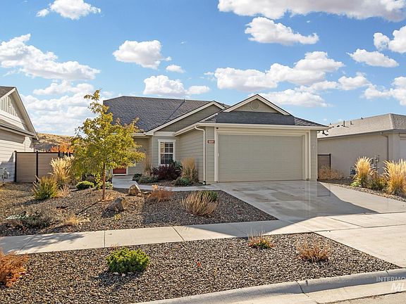 New Price. Welcome Home to this 3 bedroom, 2 bathroom, single level home with an open floorplan and a HERS (Home Energy Rating System) Index Score of 63 in the foothills of Boise. Great room welcomes you with an open floorplan, hardwood and carpet flooring, granite counter tops, a kitchen island, and stainless-steel appliances. Primary suite features a walk-in shower, walk-in closet, and dual vanity. Home is energy efficient and meets or exceeds the Energy Star v3.1 criteria, with a natural gas water heater, recirculation pump and gas furnace heat with a .6 energy factor. Laundry room leads into the attached 2 car garage. Avimor is an oasis in the foothills of Boise offering hiking trails, an indoor saltwater pool, fitness room, community center, playgrounds, outdoor swimming pool, tennis court, basketball court, amphitheater, gas station, brewery/restaurant, community events and much more.