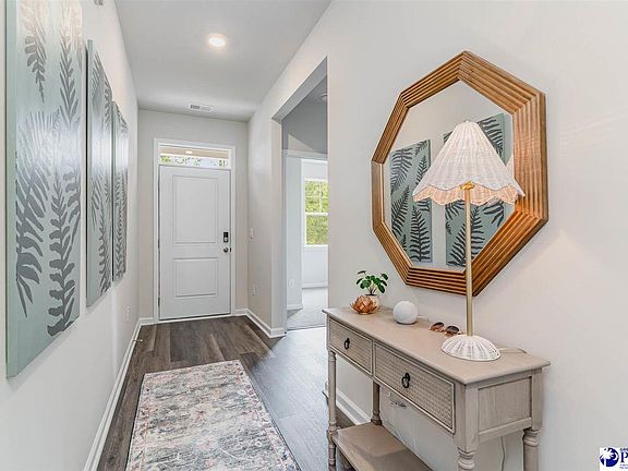 Experience the Kerry floor plan offering an open layout, 9 foot ceilings and single level living. The kitchen boasts a large island with breakfast bar and opens to the casual dining area and spacious living room. Granite countertops, a tile backsplash, 36" cabinetry and stainless steel Whirlpool appliances including a refrigerator finish off the kitchen with beautiful and durable finishes. The primary bedroom suite is located at the back of the home with a generous size bathroom with a 5' shower, double vanity, and walk-in closet. Two secondary bedrooms are at the front of the home providing separation from the primary suite. Enjoy your morning coffee on the covered back porch. This is America's Smart Home! Each of our homes comes with an industry leading smart home technology package that will allow you to control the thermostat, front door light and lock, and video doorbell from your smartphone. *Photos are of a similar Kerry home. Pictures, photographs, colors, features, and sizes are for illustration purposes only and will vary from the homes as built. Home and community information, including pricing, included features, terms, availability and amenities, are subject to change and prior sale at any time without notice or obligation. Square footage dimensions are approximate. Equal housing opportunity builder.