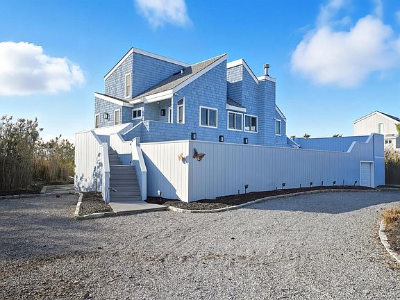 Experience contemporary coastal living at its finest in this pristine waterfront home on coveted Dune Road in Westhampton. Perfectly sited on 1.23 private acres, this immaculate residence offers sweeping bay views and effortless access to the ocean. The main level features a serene primary suite, a bright living room with fireplace, a modern kitchen, and an inviting dining area—all surrounded by sliding glass doors that open to expansive wraparound decking, creating a seamless indoor-outdoor flow. Upstairs, you’ll find two additional en-suite bedrooms and a den, ideal for guests or a quiet retreat.