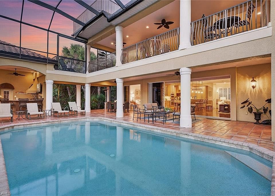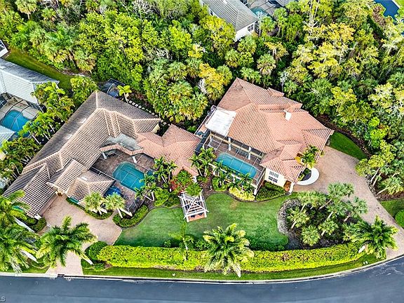 An exclusive opportunity awaits in Naples’ award-winning, amenity-rich Eagle Creek Country Club: a one-of-a-kind two-home family compound designed for multi-generational living and exceptional entertaining. Perfectly secluded on three private estate lots—approximately one acre of lush preserve—this 7-bedroom, 8.5-bath estate offers more than 6,000 square feet under air and an additional 6,000 square feet of outdoor living space. Two distinct residences are connected by a breezeway bordering a lushly landscaped front yard and surrounded by resort-inspired amenities that create a true private oasis. The outdoor experience is defined by two heated pools and a spa highlighted by authentic Saltillo tile, multiple gathering areas and expansive lounging spaces ideal for hosting events, family celebrations or relaxing in total privacy. The main residence features a gourmet kitchen with premium stainless-steel appliances, granite surfaces and a breakfast bar that opens to an elegant dining area. A study transitions to a screened solarium, while a detached primary casita suite with a full en suite bath offers French doors that open directly to the pool. A custom entertainment center, wet bar and open-concept living spaces complete the home’s effortless flow for entertaining. The secondary residence is designed for guests or extended family, showcasing an expansive great room with a gas fireplace, a chef’s kitchen with granite island, first floor bedroom and full bath with walk in closet and an additional 3 primary-sized bedrooms, each with their own bath. Outdoor living continues with a fully equipped kitchen and tavern, a poolside casita, pergola with fire pit, sky-deck observatory, four-car garage and tropical landscaping. Purpose-built as a private retreat, this distinctive estate combines space, privacy and sophistication within one of Naples’ most desirable golf communities. Full golf membership is available. Eagle Creek’s recently reimagined clubhouse offers premier dining, fitness and social amenities, elevating the lifestyle experience to resort-caliber living.