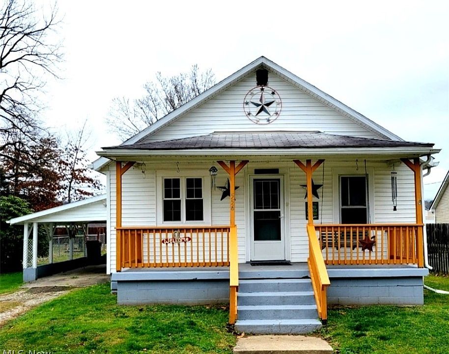 Cute, two bedroom bungalow in Franklin Local School District, updated electric in November 2022, nice size storage building remains with property, flat yard.