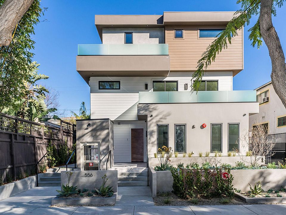 Newly constructed architectural-style building! stunning stone floors, high ceilings, recessed lighting, alarm system, dual-pane fleetwood sliding glass doors leading to a private balcony, yard spaces, separate laundry closet with washer & dryer, plus ample cabinet space. Spacious kitchen which opens up to the living room features Quartz countertops, stainless steel appliances, custom cabinets, and self-closing drawers. 13 Month lease. Last month Free!
