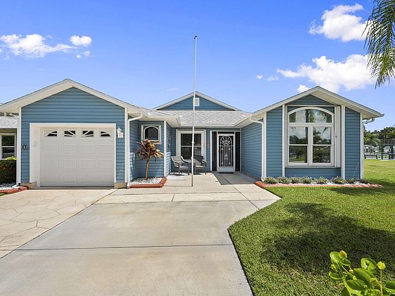 Location, location, location!! This is the one you have been waiting for. The closest lakefront home, within walking distance to the clubhouse & pool & no neighbors to the right! No honey do list here. Newly painted inside/out. New electrical panel, 2021 roof & gutters, full accordion shutters. AC 5 yr, HWH 2 yr. Custom landscape concrete edging. Tile throughout. Vaulted ceilings. Updated bathrooms. Full kitchen remodel w/ quartz, soft close features, stainless steel appliances & double oven feature, under cabinet lighting. Updated lighting/fans throughout. Palm Grove is a 55+ community with a lakeside, year round heated pool, tennis, bocce, pickleball, billiards & so much more along with an active community schedule.
