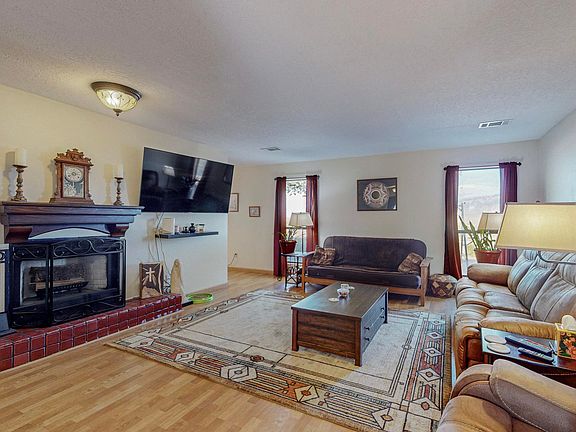 Discover the charm of this 2-bedroom, 2-bath home with a bonus office in the Vista Hill neighborhood of Rio Rancho. The office can be converted into a 3rd bedroom for added flexibility. The home includes an oversized 2-car garage, providing ample space for vehicles and storage, along with an extended driveway that allows for three cars to park side by side. Enjoy the cozy fireplace and relax in the peaceful primary bedroom. The backyard offers panoramic views from Albuquerque to Santa Fe, including the Albuquerque International Balloon Fiesta. With an open floor plan, incredible views, and a spacious garage, this home is a unique opportunity in a sought-after neighborhood.