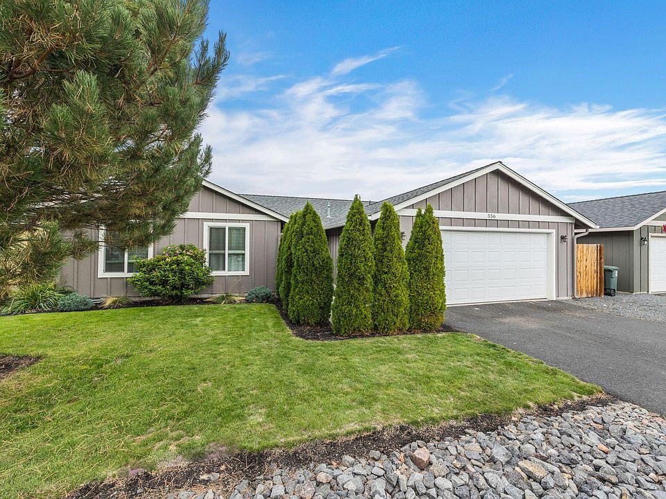 Come enjoy this bright and airy single level home. This beauty has been freshly updated and features a private setting with no neighbors behind you. Newly painted interior, laminate flooring, French doors and an open design that is comfortable and relaxing. Great room features vaulted ceilings and is open to dining and spacious kitchen with breakfast bar, newer stainless steel appliances and pantry. There is a large deck that is perfect for indoor/outdoor living space and fully fenced backyard. The home is close to town, walking trails and schools.