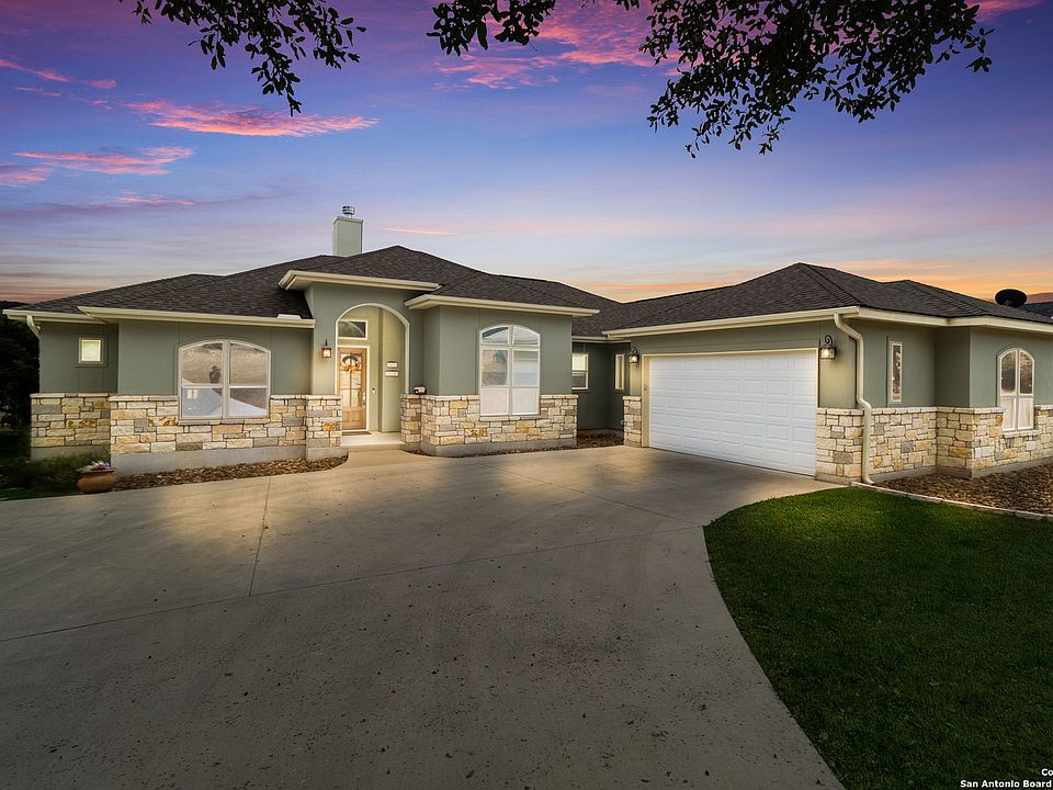 Experience Hill Country living in this beautifully maintained single-story home-featuring an expansive open layout, inviting natural light, and high-quality finishes throughout. Enjoy cooking in the modern kitchen with granite countertops, dark cabinetry, and stainless steel appliances, while the adjoining living room highlights a stone fireplace and scenic backyard views. The spacious primary suite offers a large walk-in closet and a private ensuite bath with a luxurious walk-in shower. Additional bedrooms provide versatility for guest accommodations or a home office. Outdoors, relax in the oversized, screened-in patio or soak in the covered hot tub while overlooking serene, landscaped grounds. The oversized garage also includes an extra bay, ideal for a golf cart or workshop space. Other features include a separate formal dining area, a dedicated laundry room with ample cabinetry, and a flexible floor plan with multiple storage options. The home sits in a picturesque neighborhood near Canyon Lake-offering quick access to recreational amenities, shopping, and dining. Schedule a private tour to discover the comfort and beauty of this exceptional Canyon Lake property.