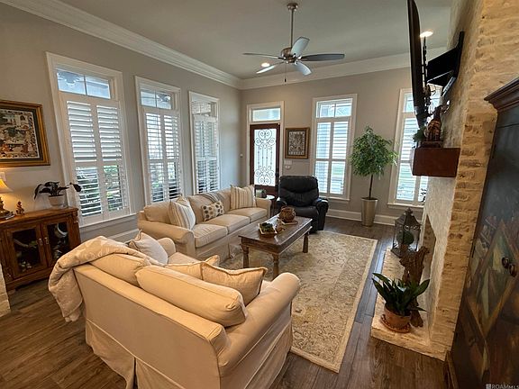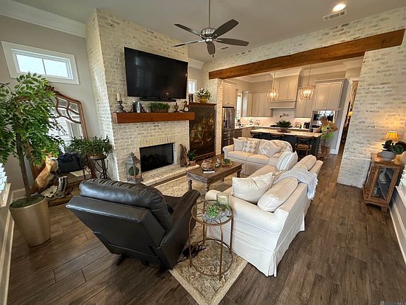 This stunning 3-bedroom home is situated on a quiet street within the Village at Conway. The home features old world charm with New Orleans styled custom ironwork and German schmear brick; the front porch, is crowned with beaded wood ceiling and boasts a cut glass and decorative Iron front door. The great room is bathed in natural light from a bank of windows across the front and side. Huge solid wood beams resting on brick columns serve as focal points in the living, kitchen and dining spaces. The well-appointed kitchen boasts an oversized island, quartz countertops and built-in upgraded stainless appliances. Porcelain plank flooring and designer tile flow throughout this custom-built home. The home features custom cabinetry, millwork, plantation blinds and window treatments. The spacious owner's suite opens to a relaxing bathroom, featuring a standalone tub, and a walk-in custom shower. The owner’s boutique closet is huge and provides ample space for wardrobe and storage. The large outdoor living space features a brick and wood privacy fence as well as decorative iron double gates. The home has a whole home generator! There is a large 2-car garage with extended storage. The Village at Conway offers green spaces, expansive lakes, walking trails, fitness center, pool and recreation and is conveniently located between Baton Rouge and New Orleans.