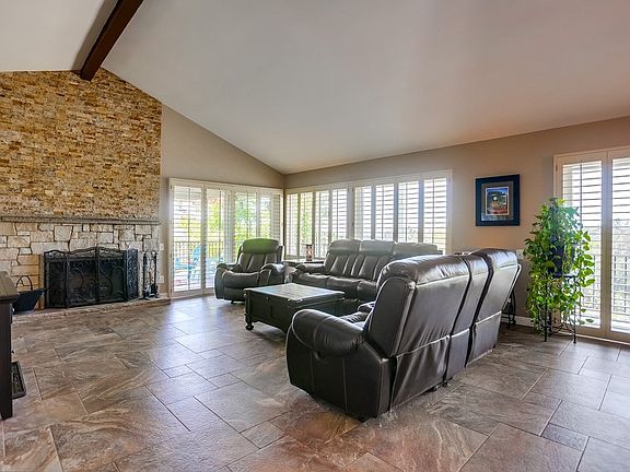 Solar power is owned & will transfer = fantastic value! Freshly painted interior and recently upgraded kitchen, master bath & fireplace surround with gorgeous views to west all set on 1.23 acre at end of street. Abundance of light floods the interior & huge storage area underneath accessed through 3 car garage. Laundry room has new, tile floor and home 'lives' single story. Land is useable with large fenced area & room for RV + toys. Section of yard is fenced seperately w/raised veg beds & room for pool.