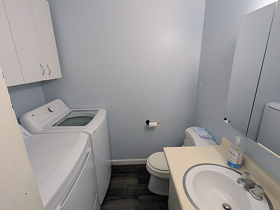 Upstairs, you'll find two generous bedrooms, and a full bathroom. The home is equipped with a provided washer and dyer (new within the last year) and has central air conditioning/heat for year-round comfort. In the basement you'll find another large living space with another large room, walk-in closet, and attached full bath (newly renovated). There is also a water softener system, as well as sink water filtration (can be left if negotiated).