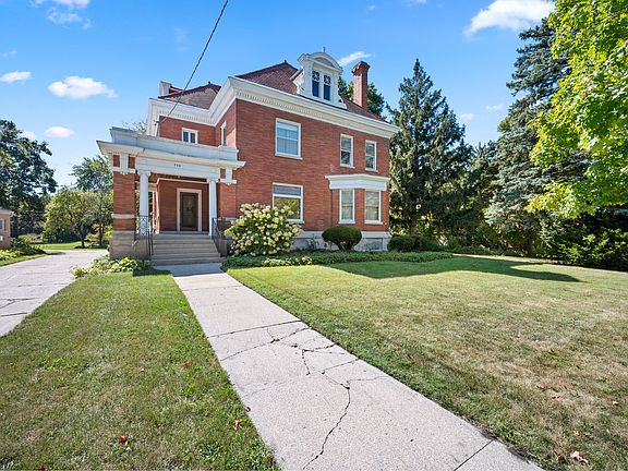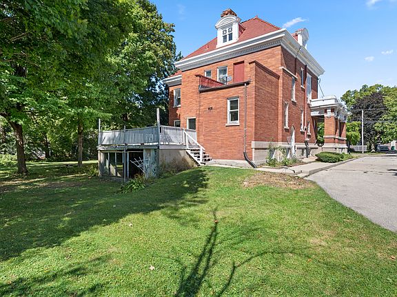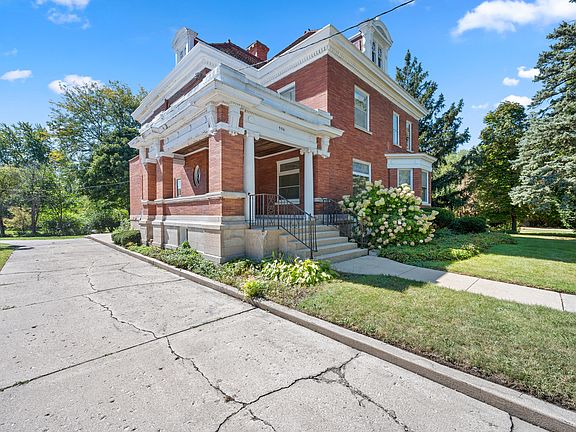 THIS IS A ONCE IN A LIFETIME OPPORTUNITY TO OWN THIS MAGICAL HOME FILLED WITH CHARM, CHARACTER, AND BEAUTY! IMAGINE THE POSSIBILITIES WITH APPROXIMATELY 4,770 SQ. FT. OF LIVING SPACE!! BRING YOUR CREATIVITY AND IDEAS! THE POSSIBILITIES ARE ENDLESS! 5+ BEDROOMS, 4.1 BATHS, EXPANSIVE GROUNDS, AND FANTASTIC LOCATION IN THE HEART OF SYCAMORE! A true gem, this stately beauty showcases an expansive covered front porch with a gorgeous front door, welcoming you to the entry with intricate tile flooring leading through the second glass door to the foyer. Here you will also find the front staircase, wide, open with a large landing, window seat and massive leaded and stained glass windows as well as another room with built-in cabinetry for more storage. The main level offers a large bedroom with closet, spacious living room showcasing a wood-burning fireplace surrounded with brick and tile, built-in shelving, and abundant windows. Centrally located full bath with a shower, large eat-in kitchen with plentiful cabinetry and counter space, and a family room, including a laundry area, another bedroom with closet, and second full bath with tub/shower. Off the family room through the sliding glass doors is a rooftop deck. Lovely woodwork, abundant windows, and closets galore throughout this home! The front or back staircases will take you to the second level, which has two suites, each with a foyer, living room, bedroom, small kitchen with some appliances, and bathrooms. Single family home or apartments! Your choice! The third level of this home houses the 5th bedroom with a closet, and large unfinished attic, which can be made into another apartment, bedroom suite, art studio, fitness or recreation room, or more great storage space. Full basement with a game room, 1/2 bath, utility/work room, and separate storage rooms. Walkout entrance to the carport leading to the backyard. New hot water heater and new owned water softener (September, 2024), and new furnace (2016). SETTLED ON CLOSE TO 3/4 OF AN ACRE IN TOWN WITH THE MOVIE THEATER, RESTAURANTS, SHOPPING, SCHOOLS, AND SO MUCH MORE CLOSE BY! MAKE THIS YOUR NEXT MOVE!