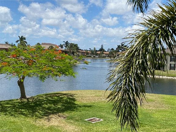 Beautiful unobstructed lake views from this split 2 bedroom, 2 bathroom condo in the desired 55+ community of the Fountains III. The home features a kitchen with granite countertops, white raised panel cabinets, with almost new appliances and a pass through breakfast bar. The spacious dining room has a wet bar for entertaining. Master bedroom suite is large with updated tile shower with frameless glass door, walk-in closet and slider to the screened in lanai. The guest bedroom with a privacy and it's own ensuite. Amenities: laundry (washer and dryer included in unit) Roof (new 2023) Tankless water heater (new 2022) HVAC (2019) extra storage unit, 23 x 7 lanai perfect for watching the sunset over the lake. Located just 15 minutes from 5th Avenue and the beach! Assigned covered parking.