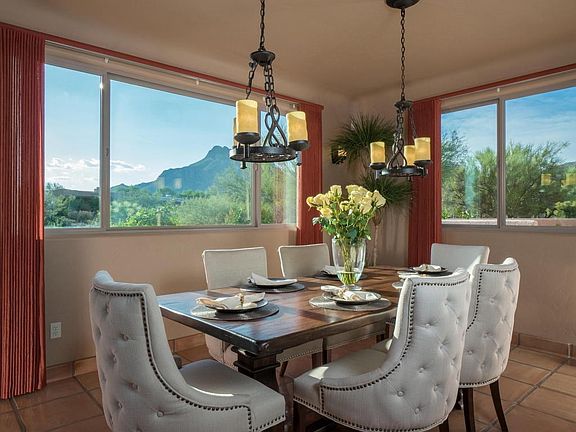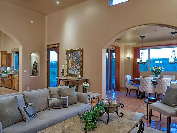 Nestled in the Foothills of the Tucson Mountains in a prime cul-de-sac this Custom Estate showcases impressive detail & sweeping mountain views. Designed around a stunning, interior courtyard w/ beehive gas FP. 2,588 sq. ft main house offers a comfortable great room layout, formal dining, master retreat, guest room, & office. Upscale kitchen w/ granite counters, an oversized island, knotty alder custom cabinetry, Five Star 5 burner commercial gas range, & stainless appliances. Master Bedroom w/ beehive FP, walk-in closet, ensuite bathroom w/ double vanities, coffee bar, & steam shower. 633 sq. ft guest casita w/ an additional kitchen, bath, living room, & private bedroom. Bonus/hobby room. Owned Solar Panels. Private viewing patio offering 360 degree views of the surrounding mountains.