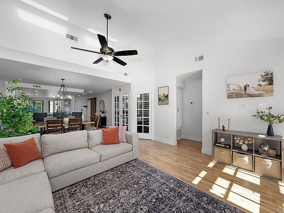Tastefully updated single-story townhome in the sought-after Adobe Falls community. This light-filled, open-concept home features a stunning kitchen with crisp white cabinetry, Quartzite countertops, a farm-style sink, built-in beverage fridge, and an oversized double-door pantry for exceptional storage. Recent upgrades include Solar panels, wide-plank flooring, stainless steel appliances, remodeled bathrooms, and more. Multiple outdoor living spaces invite relaxation — from the central atrium that fills the home with natural light to your own private backyard, perfect for entertaining or unwinding. Skylights enhance the airy feel, creating a bright and inviting atmosphere throughout. The attached, finished two-car garage offers epoxy flooring, abundant cabinetry, and even added attic storage. Ideally situated near major freeways, this home provides convenient access to shopping, dining, and all that San Diego has to offer. Move-in ready and thoughtfully redesigned, this is a rare opportunity to own a stylish, single-level home in a prime location.