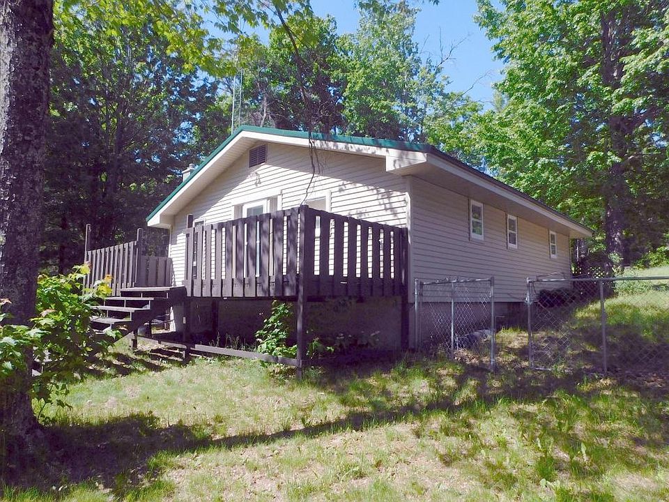 HOME ON 11 ACRES- Very neat and clean 2 bedroom, 1 bath home sitting on 11 wooded acres bordering state land. Steel roof, central air, newer forced air furnace fenced in backyard, vinyl siding, tile flooring, newer windows and a newer 4 inch well are some of its features. Also a detached and heated garage, additional 2 car garage, and large storage shed. Large master bedroom and in move in ready condition. $ 89,900 A-2657