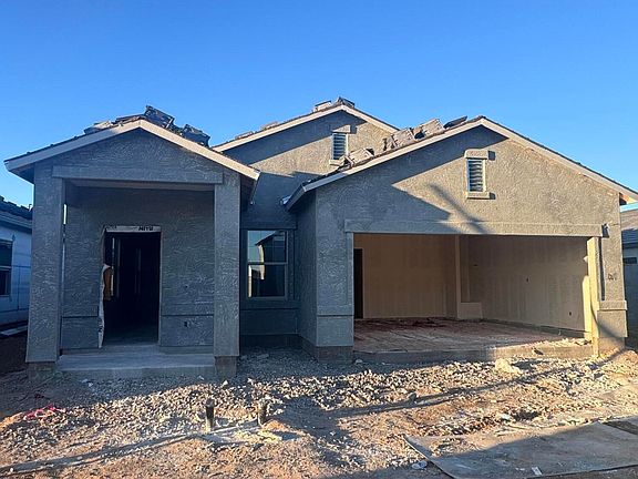 Beautiful NEW Home in PRIME East Valley location, close proximity to San Tan Valley and Queen Creek. North/South facing lot with large side yard! Close proximity to community amenities. Overlooking scenic desert views. Featuring countless upgrades such as White Shaker Cabinetry, Granite Countertops, Stainless steel appliance package (washer/dryer/refrigerator), and 9' ceilings throughout! Spacious walk - in closet in owners suite. Energy - efficient features including dual pane windows, WIFI programmable thermostats and insulated garage doors. Front yard landscaping package, covered patio and porch. Neighborhood parks, playgrounds, covered picnic tables and greenbelts throughout. Spectacular mountain views, minutes from hiking trails and recreational parks. Highly rated schools nearby, shopping, dinning and aquatic center! Surrounded by open Sonoran Desert habitat, Florence is a western gem!