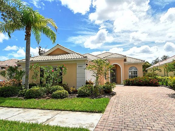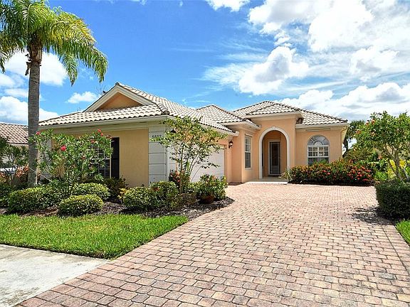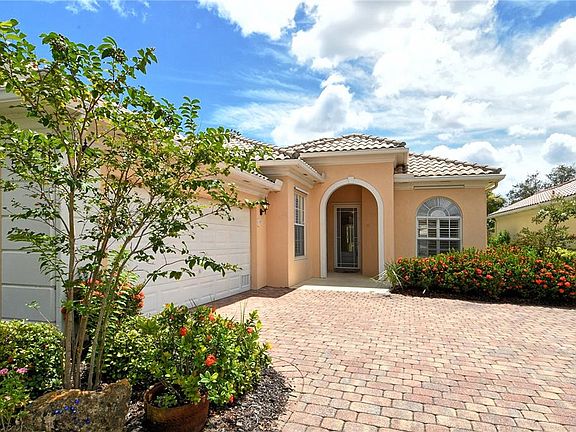 One or more photo(s) has been virtually staged. Only Oakmont currently available with private pool/spa & water views. Over 2000 sq. ft. Featuring 3 bedrooms & 3 baths. This very popular free standing maintenance free home in Villagewalk has numerous recent upgrades. Custom pool/spa package situated on large screened lanai overlooking a private pond. Lanai fridge/freezer to keep drinks & snacks cool when you entertain guests in the pool. Sellers have added updated appliances, granite counters, tile back splash & updated pool/spa heater. Main living area has neutral tiles which were professionally cleaned & sealed. All bedrooms feature bamboo wood flooring. Side entry garage with finished floor. This home is situated far from I-75 noise. Ready for a quick occupancy. Community features resort style living with amenities including 2 heated pools, 6 har tru tennis courts, fitness center, clubhouse, restaurant, salon & gas station with walking or biking paths throughout community along the many lakes, preserves & bridges with 24 hr. security gate with guard. Centrally located on Popular Palmer Ranch near shopping, restaurants, YMCA, Legacy Bike Trail, beaches & easy access to I-75.