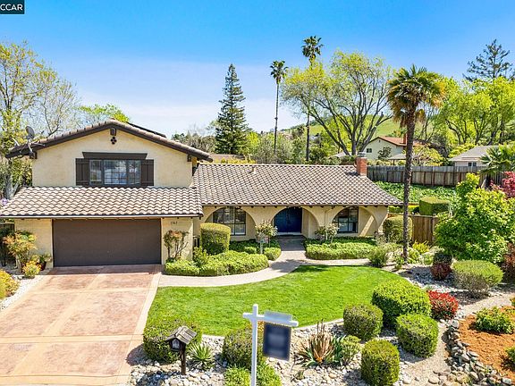 Spacious Spanish-style home situated at the end of a court in the desirable Seven Oaks community, bordering the town of Clayton. Bedroom & full bathroom on 1st floor! Easy-living floor-plan has a formal living room opening to the dining room, as well as a separate family room/kitchen/eating-nook combo. Updates have been made and the home still displays touches of retro-charm throughout. ROOF was replaced in 2023, dual-paned windows, plantation shutters, SOLAR for energy efficiency and savings! Majestic, beautifully landscaped yard features a gleaming pool, putting green, grassy area for play, 2 decks, charming pavers, and an awning for shade. Conveniently located near K-12 schools, shopping, restaurants, art & wine festival, concerts in the park. Offers: Thursday