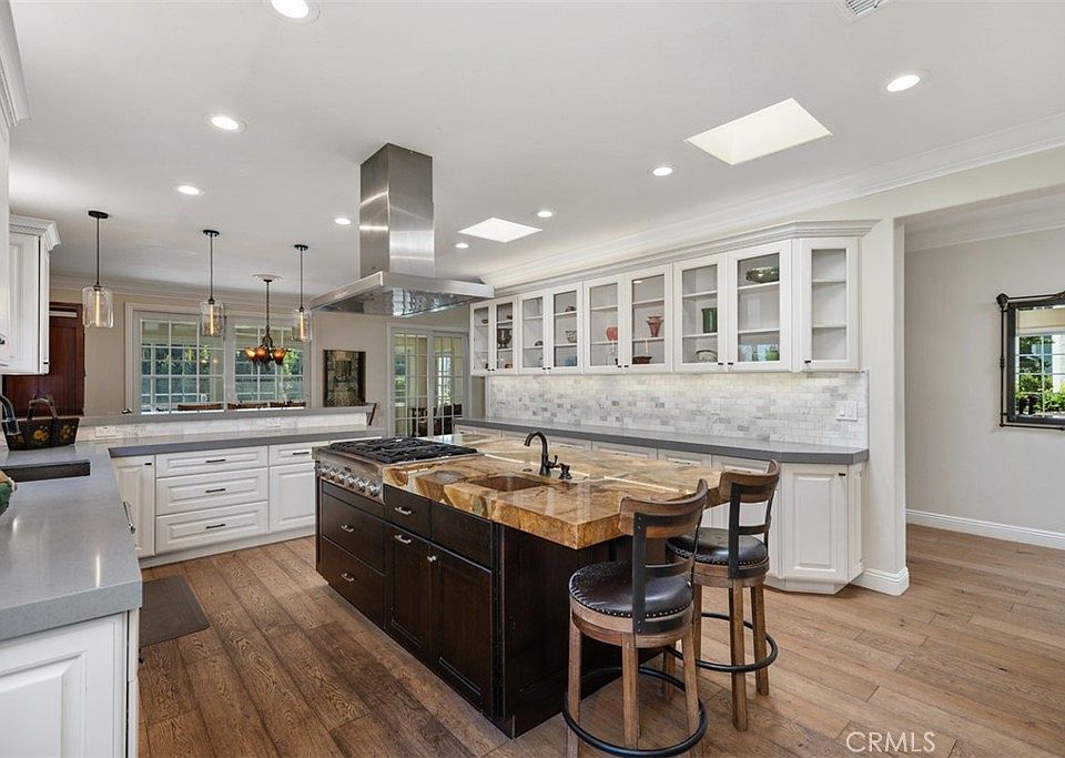 Exquisite Grand Finale CASA PALMA, a rare fully customized “110” Masterpiece remodeled in 2015 and hidden within the exclusive guard-gated Laguna Woods Village. The Versailles pattern tumbled travertine courtyard and stunning iron scroll double doors welcome you home. Every element reflects luxury and craftsmanship. Inside, Garrison French Oak oil-finished engineered wood flooring and eleven foot ceilings with designer crown molding and baseboards. Skylights and upgraded lighting fill the home with warmth and sophistication. The expansive living room showcases a dramatic stacked stone fireplace and a custom library wall with rolling ladder. A glass-enclosed patio room creates a seamless indoor and outdoor retreat. One of the few gas equipped homes in the community. The chef’s kitchen is designed for serious cooking and entertaining, with a redesigned center island, slab quartz counters, two copper sinks, premium appliances, abundant cabinetry, skylight, and a rare commercial-grade gas cooktop. The serene primary bedroom suite features a spacious custom walk-in closet and a spa worthy ensuite bathroom with an aromatherapy steam shower, soaking spa tub, heated floor, and a romantic gas fireplace wall. The guest bedroom is also thoughtfully upgraded and is served by a well appointed guest bathroom with a walk-in shower and designer finishes. A dedicated laundry room includes quartz counters, laundry sink, and generous storage cabinets. The oversized two car garage provides excellent storage. Multiple outdoor spaces including a private front courtyard, tranquil rear patio, and enclosed patio room offer the perfect settings for relaxation or entertaining. This residence stands apart for its thoughtful upgrades and timeless design. Set within a vibrant resort-style community offering golf, pools, clubhouses, fitness centers, and over two hundred fifty social clubs, this is more than a home, it is a lifestyle. Opportunities to own a move in ready one of a kind property of this caliber in Laguna Woods are exceptionally rare.