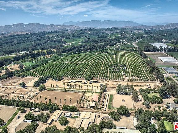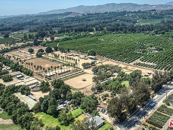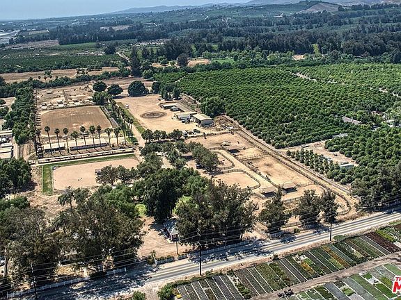 Welcome to a legacy opportunity to own and run a premier equestrian facility in an upscale ranch area convenient to Los Angeles. This is quintessential California, nestled among orange groves with afternoon breezes and beautiful sunsets under the palm trees. The property includes two parcels and sits on 19.96 flat/usable acres. It features four barns (total of 57 indoor and outdoor stalls) an eight-stall mare motel, and a variety of paddocks with shelters and multiple pastures. Automatic waterers in all barns, stalls and pastures. To accommodate boarders, trainers and clients, the property has four large tack rooms and three arenas, (one training, one reining, and one fully fenced), two soft sand 60' round pens, two turnouts including a pasture paradise, and a hot walker that accommodates up to six horses. Top of the line Buckley fencing and gates. Located in Somis, an agricultural community located between Moorpark and Camarillo, the property has year-round temperate weather, ocean breezes, and is surrounded by citrus groves. Minutes away from Thousand Oaks, Santa Rosa Valley and Simi Valley and fifteen minutes from Happy Camp with miles and miles of trails. There are multiple RV hook ups, an equipment garage, a hay and shavings barn, workshop and ample parking for guests, clients and events. The property has an abundance of onsite housing, featuring two charming ranch houses and a modular home for your barn manager. One of the homes has 3 bedrooms and one bathroom, a cabin style wood stove, and an oversized two car garage; the second home has two bedrooms and one bathroom, with recently remodeled bathroom & kitchen featuring new appliances, new flooring and a covered patio. The modular home is conveniently located near the barns, and was renovated in 2019 with a new bathroom, floors, appliances, fresh exterior paint, and a wood deck. The property is supplied water from two sources, both agricultural water, as well as Ventura County city water. A prestige property in a superb location! See inclusion/exclusion list.