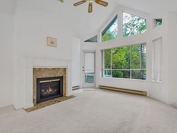 Spacious top-floor 2-bedroom, 2-bathroom home with a generous layout and vaulted ceilings in the living room that create an open, airy feel. A cozy gas fireplace adds warmth and charm, while large windows frame a peaceful, treed outlook. The functional floor plan offers excellent separation between bedrooms, ideal for privacy and versatile living. Bright, quiet, and well-appointed, this large home combines comfort and style in a tranquil setting. Call for an appointment today.