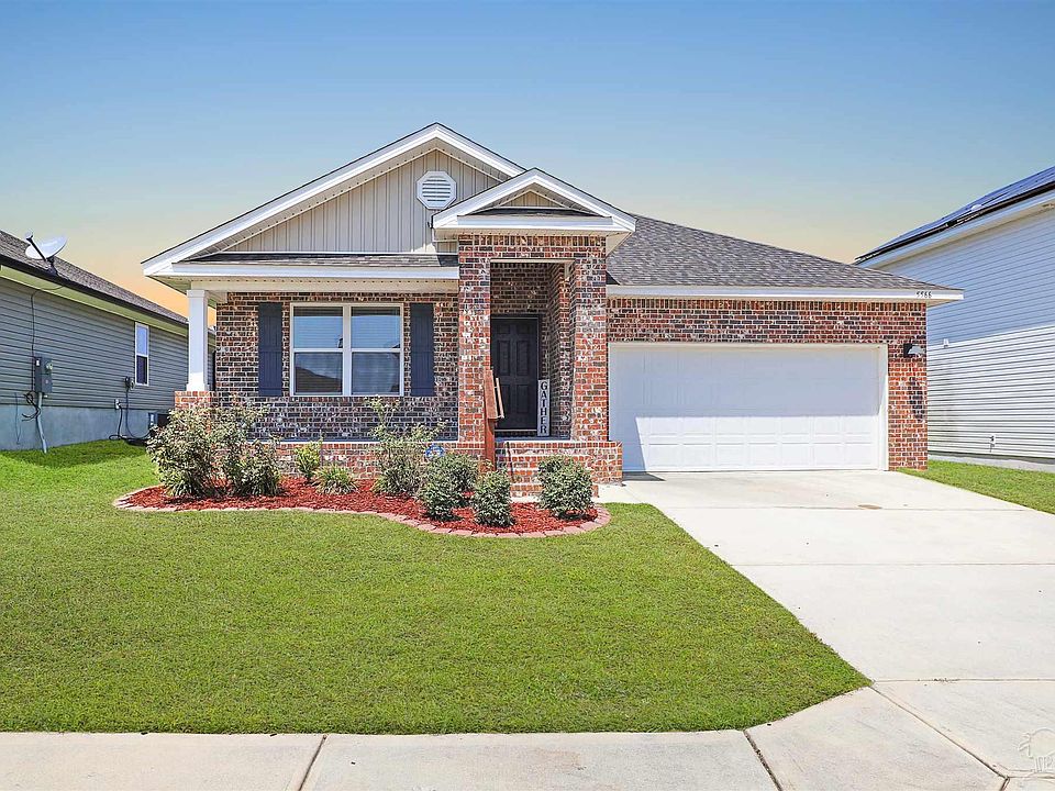 Welcome to this beautifully designed 4-bedroom, 2-bathroom home, built in 2021, offering nearly 1,800 square feet of modern living space. The home features a stylish brick front and an interior without carpet, showcasing durable flooring throughout. The open floor plan is perfect for both relaxation and entertaining, with a large, open concept kitchen at its heart, complete with elegant granite countertops and stainless appliances. Enjoy the convenience of Smart Home Technology, including keyless entry and a video doorbell, alongside the added peace of mind provided by hurricane fabric window protection. The property also boasts a fully fenced backyard with a privacy fence and front yard sprinklers, creating an ideal space for outdoor enjoyment. Located in a desirable neighborhood with sidewalks and underground utilities, this home is centrally situated between Pace and Milton, just 8 minutes from grocery and hardware stores, 20 minutes from downtown Pensacola, and 24 minutes from Whiting Field NAS. Additionally, the sellers are offering great incentives for buyers who go under contract within 30 days, including contributions toward closing costs or a rate buy-down. Don't miss the chance to make this charming house your new home.