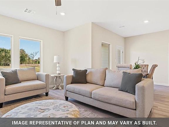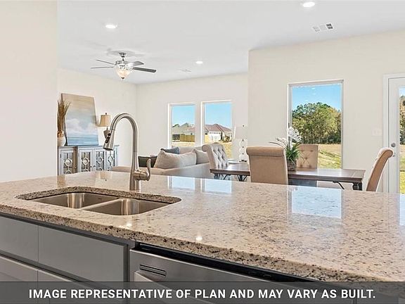 The Denton is a fabulous 3 bedroom, 2 bath home. Two guest bedrooms share access to a full bathroom off the home's entryway. The kitchen island opens into the living and dining areas with natural light spilling in from the windows from the patio. The kitchen features stainless appliance package including gas range, and a corner pantry. Main bath has double vanities and separate shower with garden soaking tub to relax away the day, and the main closet is a generous size. Luxury vinyl plank floors are in all living areas and the main bedroom. 9ft ceilings throughout this home. Post-tension slab with 10 year structural warranty and Smart Home automation included; Qolsys panel, WiFi thermostat, WiFi enabled deadbolt lock, garage door opener, doorbell camera, and Alexa Dot for voice control - or you can control from your smart phone. This home is a must see!Post-tension slab with 10 year structural warranty and Smart Home automation included; Qolsys panel, WiFi thermostat, WiFi enabled deadbolt lock, garage door opener, doorbell camera, and Alexa Dot for voice control - or you can control from your smart phone. Celebrate the return of neighborhood living with your family in Lakeshore Villages! Swim in the resort style, community pool and splash pad, picnic under the shade of the open-air pavilion, or let the kids run and play at the neighborhood playground. Get your work out in at our Fitness Center inside the Clubhouse. Visit the neighborhood lakes and enjoy fishing or relaxing in the sun by the fountains. We also have a Basketball Court, Soccer Field, Fishing Pier, and Dog Parks in our community!