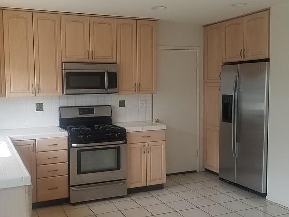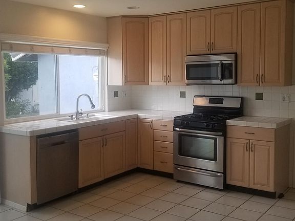 Light and bright 3 bedroom 2 bath home on quiet street across from beautiful park Pool Front and back yard Central A/C and Heat Ceramic tile in living room, kitchen and bathrooms. Laminate in bedrooms Walk in closet in Master Very large kitchen/dining area with tiled countertops and plenty of cabinet space. Stainless dishwasher, microwave, stove and refrigerator W/D hookups 2 car garage Ceiling fans throughout Recessed Lighting Wood Blinds Pet ok with deposit $2995/month $2995/deposit Tenant pays pool and gardener This house is ready for an immediate move in. Please call to schedule a time to view it.