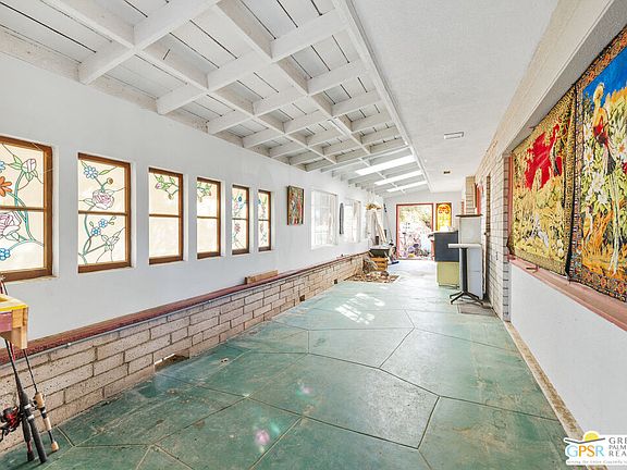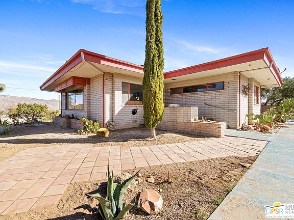 1951 MOD time capsule with lots of character, charm, and potential to be the showpiece of this high desert sleepy neighborhood of Juniper Terrace. Situated on a fenced 2.5 acres and corner lot this very Frank Lloyd Wright inspired design, with outrageous views in all directions, has endless potential. Extremely private and quite with amazing views and patio space, firepits as well as built in book shelve/drawers in bedroom, wood floors, fireplace(s) vintage tile and more can be found though the sprawling 2400 sq foot of living space. Outside is a guest house, greenhouse, 3 car garage, pistachio orchard and farm/feed area with goats and chickens + greenhouse/tackroom area. Come see this absolutely eccentric property that exudes high desert mystique.