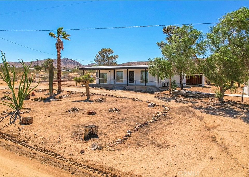 Welcome to your fully upgraded desert sanctuary in Landers, CA! This beautifully remodeled 2-bedroom, 2-bathroom home, sitting on an expansive 2.5-acre lot, seamlessly integrates modern comforts with nature's grandeur. With a stunning new electric panel, roof, plumbing system, and hot water heater, every corner speaks of renewed craftsmanship. As you enter, polished concrete floors lead you through an open-concept living and dining area, illuminated by new recessed lighting throughout. Fresh paint graces the walls, exuding a sense of warmth and sophistication. The completely transformed bathrooms not only showcase modern fixtures but also a serene soaking tub for those moments of pure relaxation. Climate control is personalized in each room with the newly installed heating and cooling mini-splits. Cooking will never be the same in your revamped kitchen, equipped with brand-new appliances and custom-made barn doors to discreetly yet stylishly hide the washer and dryer. And, with large beautiful picture windows in the living room and throughout the house, nature's artwork is your constant backdrop. The sunroom, a special feature of this home, offers an additional space to unwind. For those who love outdoor relaxation, four hammocks await. Around the property, a fence secures approximately ¾ acre, offering a perfect haven for pets. The 2-car garage comes with a separate room, perfect for storage or as a workshop. A mere 3.5 miles down the road lies La Copine, easily accessible for those leisurely trips. And if stargazing is on your list, this property, with its vast open skies, is simply perfect. Capture the essence of desert living with this meticulously rejuvenated home, complete with modern amenities and a unique charm. Don't let this Landers treasure slip away. Book a viewing today, and step into your personal slice of paradise!