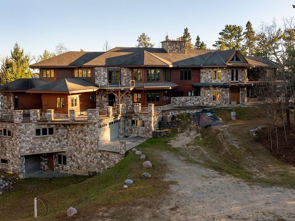 Discover a once-in-a-life opportunity on Ten Mile Lake, one of Minnesota’s most pristine and sought-after lakes. This extraordinary 14,000+ sq. ft. lakefront estate is ready for completion to your exact vision with a commercial-grade steel and concrete structure, engineered for durability and designed for elegance. Nestled on 4.3 wooded acres with 466+ feet of hard-bottom shoreline, the property combines privacy, architectural grandeur with an unparalleled natural setting. The groundwork, foundation, and structure are complete, a significant head start for anyone seeking to create a world-class home without years of planning and permitting. With Ten Mile Lake’s crystal-clear waters, exceptional fishing, and proximity to Hackensack, Longville, Walker and Leech Lake, this property offers a rare blend of opportunity, privacy, and prestige. The exterior showcases hand-cut shakes, stone accents, and several decks for outdoor entertaining and beautiful lake views. Inside, the infrastructure is already in place, including spray foam insulation, in-floor hydronic heating throughout, and a high-efficiency boiler system with off-peak electric service. A commercial elevator provides access to all four levels, while a service lift delivers firewood to any of the wood-burning fireplaces throughout the home. This property offers unmatched versatility, it could serve as a private family estate, a corporate retreat, a luxury VRBO or even a recovery and wellness center, offering tranquility and inspiration in a serene lakeside setting. With the home unfinished, the new owner has the freedom to customize every finish, layout, and design element to suit their vision. The main level was envisioned with a grand owner’s suite featuring a fireplace, dual bathrooms, walk in closet, lake-view walkouts, and plumbing for a sunken tub with breathtaking views of both the lake and woods. The kitchen area is designed to host a large island, food prep station, and even a wood-fired pizza oven built into the central stone fireplace, an inviting centerpiece for family and guests. A spacious dining area, powder room, dog wash station, and guest entrance with private garage parking and a covered grand entrance complete this level. The upper level was designed for flexible living, including multiple bedrooms with private bathrooms, offices, and hobby spaces. Other thoughtful details include a entertainment area, wet bar, movie area, and space for a game room or workout room, making this home ideal for entertaining and family gatherings. The lower-levels features over 4,000 sq ft of garage space, shop area, recreational area, underground garage features a convenient drive-through design, ideal for snowmobiles, boats, UTVs or recreational storage, perfect for year-round Minnesota adventures. An air compressor system connects to both garages for workshop projects or equipment maintenance. Because the home remains unfinished, it presents a rare chance to customize every finish and design element to your exact style, modern, rustic, or traditional. Every system and structure has been built for longevity and performance, awaiting your final creative touch. Ten Mile Lake spans over 5,000 acres and reaches depths of 208 feet, earning a reputation as one of Minnesota’s clearest, deepest, and most sought-after lakes. Fed by natural springs, it offers exceptional water quality, fishing, and boating. Also, known for its outstanding fishing, walleye, pike, bass and panfish await. Located near Hackensack and Walker, you’re close to charming restaurants, boutique shopping, and year-round recreation. This is a once-in-a-lifetime opportunity to bring your vision to life, crafting a masterpiece estate that blends luxury, craftsmanship, and the timeless beauty of Ten Mile Lake. Bring your vision, builder, and imagination, and make this remarkable estate your legacy.