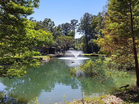 Expansive pond water fountainInviting organic layoutHardwood floorsLush native treesLight-filled living spacesSpacious master bathAmple storage