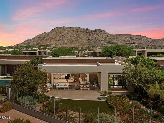 Beautiful Paradise Valley Home! Nestled in the prestigious Mountain Shadow Resort, this luxury home offers breathtaking views of Camelback Mountain and the golf course. Designed for seamless indoor-outdoor living. the residence features soaring 12ft. ceilings and expansive 9ft. bi-fold doors that open to a serene patio and English garden. The gourment kitchen is a chef's dream, equipped with top-of-the-line Wolf appliances including oven, microwave, and steamer over, along with a Sub-Zero refrigerator and wine storage. The home boasts four bedrooms, with a luxurious primary suite that provides stunning views of Camelback Mountain. The state-of-the-art Savant system allows for remote control of lights, TV, shades and security, ensuring convenience and peace of mind. The property is secured with a 24-hour guarded-gate entry, offering both privacy and security.