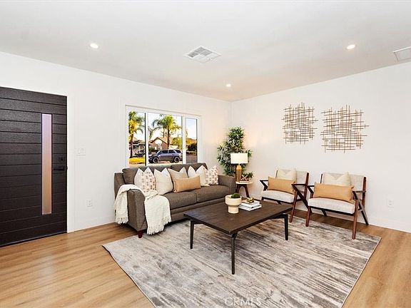 Welcome to your beautifully Remodeled 3-bedroom, 1-bathroom haven, boasting a generous 875 sq. ft. of thoughtfully designed living space. This charming residence has undergone an extensive transformation, showcasing a blend of modern upgrades and classic comforts. Nestled in a prime location just minutes from the 210 freeway, this home is situated in a tranquil cul-de-sac, offering both convenience and serenity. The property's strategic placement ensures easy access to major transportation routes, making commuting a breeze. Experience peace of mind with a brand-new roof and energy-efficient windows that invite natural light to dance throughout the home. Step onto pristine new flooring that not only enhances aesthetics but also ensures durability for everyday living. A newly installed front sprinkler system and sod create a lush and inviting curb appeal, while the fenced backyard offers privacy and plenty of space for relaxation, entertainment and even better...a possible ADU may be added with City approval. The entire house has been rewired, with a new panel ensuring functionality of your electrical systems. Enjoy the convenience of partial plumbing updates in remodeled areas, a main sewer cleanout, and a meticulously inspected sewer system by a licensed plumber. Bid farewell to outdoor laundry hassles as we've thoughtfully moved the laundry facilities indoors for your convenience. Revel in the fresh ambiance created by newly painted interiors and exteriors, accented by new doors, moldings, and closet doors. The heart of this home is its new kitchen—complete with cabinets, gorgeous black countertops, tile and newer stainless steel appliances. A sleek design, modern black faucets, and farmhouse sink elevates the culinary experience. Bathroom boasts a new tub, custom black tile work on floors and subway tile shower walls, and a state-of-the-art tub shower valve for a spa-like oasis. All-new light fixtures, complemented by modern door locks, knobs, and hardware. This meticulously renovated property seamlessly combines comfort and style, offering a turnkey solution for those seeking a move-in-ready home. Don't miss the opportunity to make this gem your own—schedule a viewing today.