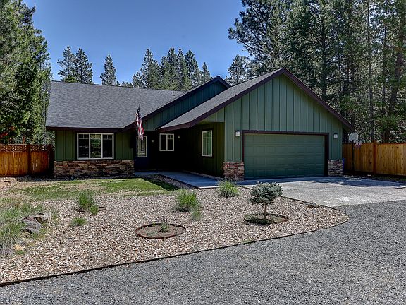 Nestled in a forest like sitting, this single-story craftsman-style home with 4 bedrooms & 2 bathrooms on .53 of an acre features an open concept floor plan, vaulted ceilings, a nice sized kitchen with stainless steel appliances, ample storage, under cabinet lighting, a breakfast bar & eating area that opens to the living room with a new wood stove. The spacious primary bedroom offers a large walk-in closet, tile shower & quartz countertop vanity. Enjoy the spacious private backyard with a great deck, and garden area & fully fenced. The HOA includes a community marina & dock on the Big Deschutes River, water, sewer, road maintenance, and snow removal.