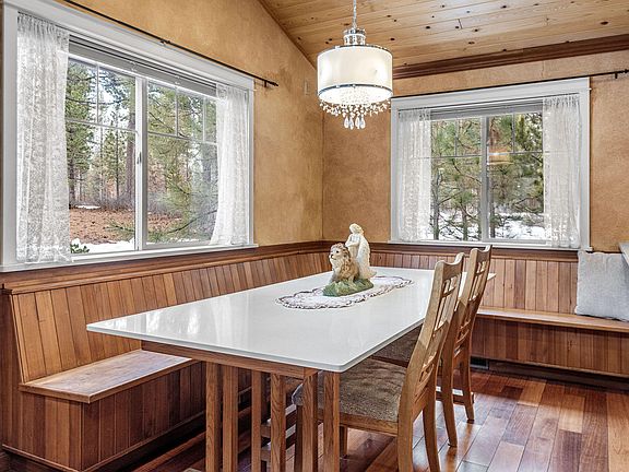 Charming Chalet home in resort-style River Meadows neighborhood. Enjoy National Forest views while soaking in upper deck Hot Tub. Main floor features Hardwood flooring throughout great room, dining and kitchen, quartz countertops, stainless appliances, custom quartz dining table, Full guest bath, cozy woodstove, skylights, and large windows. Master suite and guest bedroom open onto front deck. Downstairs area includes small kitchenette/laundry room, Full bath, bedroom, and bed/bonus room with pull-out bed cabinet. Single-car garage and toy storage area under deck. You will feel like you are on vacation while enjoying community pool, walk/bike paths, tennis/pickleball court, workout room, clubhouse, boat marina, 2 docks for kayaking/paddleboarding or a float on the Deschutes River. Open & covered RV/boat storage, yard debris field.
