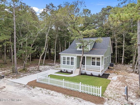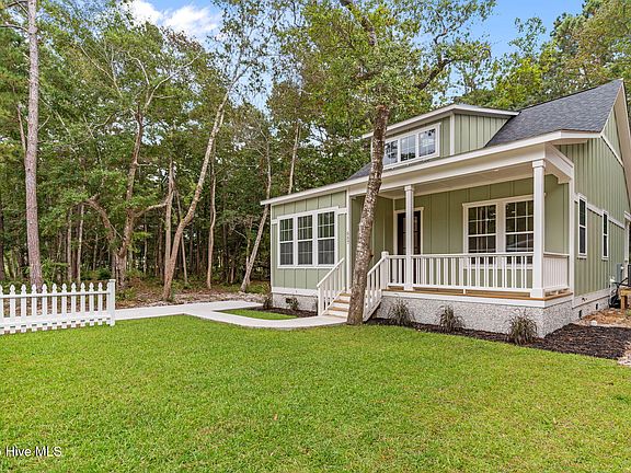 Architectural shingles give the black onyx roof depth and really set off the box dormer. Inside this home has 10ft ceilings throughout! Vaulted living room ceilings, ship lap white wash fireplace wall with a 60'' electric white fireplace. Open kitchen with island and driftwood cabinets, and granite counter tops. Appliances include dishwasher, range and hood. Main bedroom has a walkin closet. 2 beautiful full baths with with shaker style wainscoat trim. Full size laundry room. Wood ceiling fans in bedrooms and living. Large 72'' windows allow the light to come pouring in. 8ft doors give this cottage a grand feel and the advantech floor system provides superior strength, moisture resistance and squeak free. If you have been looking for something close to the water and a laid back lifestyle this is it. a short golf cart ride to two waterfront county parks and NC Wildlife water access.