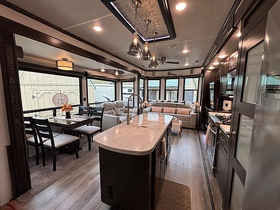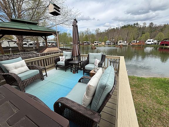 Escape to your own lakeside haven with this gorgeous 2021 CRS, perfectly positioned on a peaceful pond in the sought-after River's Edge RV Park in Blairsville, GA. This 40' destination trailer features three slide-outs, a king bedroom, a front living area with a fireplace, and a full residential kitchen with an island and stainless appliances. The RV site includes an enclosed gazebo—ideal for watching football, reading, or simply soaking in the tranquility of the water. As a bonus, there's a separate detached office or flex space, perfect for remote work, hobbies, or extra guests. All of this in a quiet, Mountain community just minutes from Vogel State Park and the beauty of the North Georgia Mountains.
