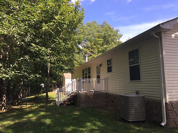 Enjoy this spacious ''like new'' 1,620 sq ft 3 BR, 2 bath house on 5 acres. 2 Garages: insulated, electric, and finished. This upgraded manufactured home features an open floor plan; kitchen with 2 islands for extra seating and storage; double sinks in bathrooms; private office area, convenient laundry room, 2 nice decks, central heat/AC. Owners purchased the property for the beautiful views. Property located as the ''last house on the ridge'', tree buffer, good gravel drive and plenty of parking.
