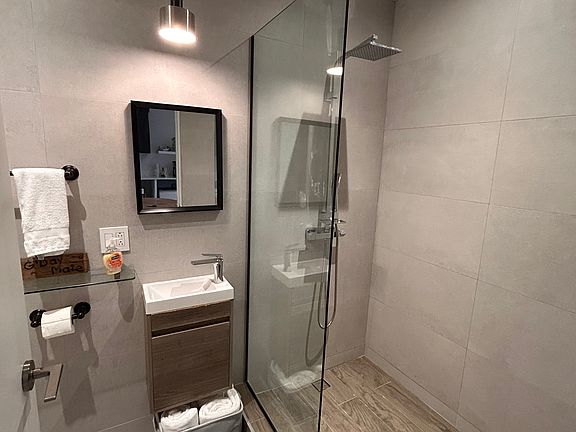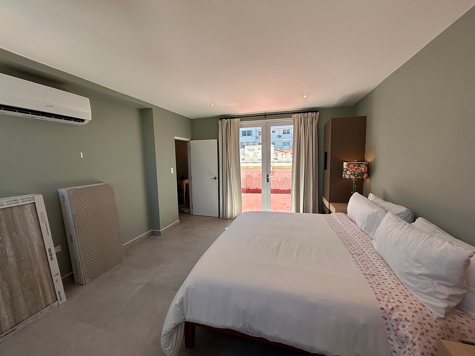 This rental has a furnished bedroom with a view of the Condado Lagoon and the ocean. The room also has an attached porch. The bathroom has a full shower. It also doubles as the guest bathroom, but make it your own. There is a shared dining room, laundry area, kitchen, living room, and back patio. All areas are furnished and accessorized.
