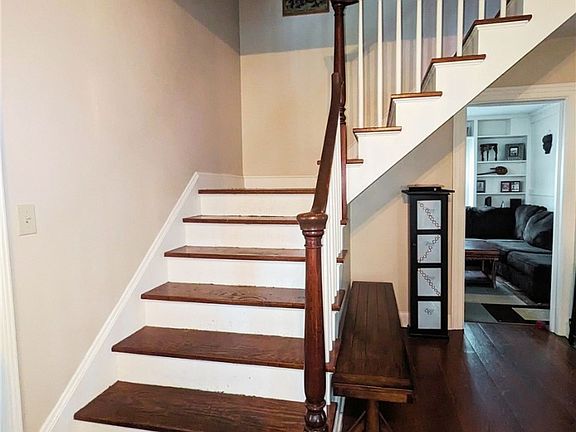 Upstairs, you'll find a fully remodeled bath with a soaking tub and step-in shower, along with four spacious bedrooms—one with a fireplace and another with dual closets for extra storage. Outside features include a metal roof, detached garage with storage, fenced yard, covered patio, and a concrete basketball court. Located close to everything Coshocton has to offer, this home blends historic charm with modern comfort—don't miss it!