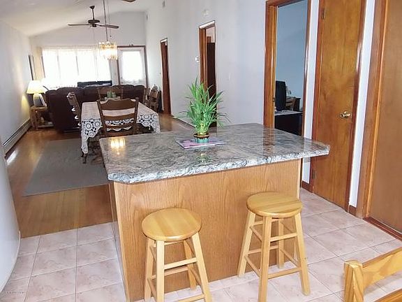 You won't believe how spacious this ranch style house is. Hardwood floors throughout. Beautiful updated eat in kitchen with granite island and oak cabinets. Refrigerator included. Sliders off kitchen to deck and fenced in backyard. Master bedroom with full bathroom. Another bedroom with half bath and another full bathroom with tub and shower. Family room is a multi purpose room with 12x12 tile 2 sets of sliding doors and entrance to the garage. Backyard is fenced in with large shed and garden area. Double size concrete driveway. This house is pristine inside and out. Newer Boiler for the hot water baseboard heat, central air. You must see this house.