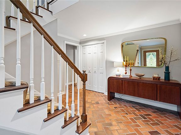 Updated powder roomBeautiful millworkBrick-tiled entryButcher-block islandBreakfast nookAbundant cabinetryStunning wood ceiling