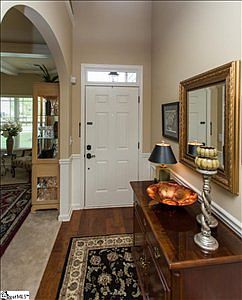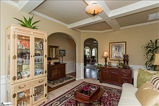This 2 story traditional craftsman style home is immaculate. Featuring a huge Master Suite on Main with trey ceiling, and a spectacular master bath with 2 separate vanity areas, beautiful arch over garden tub with its own chandelier, large walk in closet, separate linen closet and glass shower. All 3 upstairs large bedrooms feature high vaulted ceilings with fans and walk in closets. Bedroom 2 has its own private bath, bedroom 3 and 4 share a Jack and Jill. The loft area upstairs is ideal as an office space or just a quiet place to relax! Downstairs, the large open kitchen has granite counter tops, island, pantry, gas stove, garbage disposal, upgraded dishwasher, lots of cabinet space, built in desk and breakfast area which easily seats 6. The den has a coffered ceiling with lighted fan, gas fireplace and built in wall mount for TV. The separate front room also has a coffered ceiling and is currently used as a formal living room but is ideal as a formal dining room space. Crown molding and wall accents abound. Updated lighting throughout. Custom mirrors in baths. Outside, is a covered porch with 2 lighted fans opening up to dual hand-laid stone patios with retaining wall and built-in for the natural gas grill. Lots of custom landscaping including a line of privacy trees. The roomy 2-car garage has a remote access entry feature. Easy access to I85 and minutes to I385, this house is ideally situated to downtown and shopping. Students here attend Riverside High, Riverside Middle and Woodland Elementary