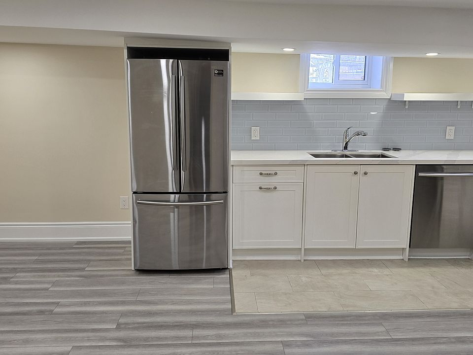 Beautiful kitchenNew stainless steel appliancesElegant bathroomBrand new hardwood floorsPot lightsAir conditioningLaundry facilities