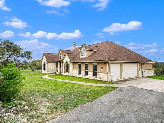 *** Seller is offering up to $20K for rate buy down or buyer's closing cost with a full priced offer. *** Texas Hill Country home on 6 acres truly offers a unique opportunity. This 1-story gem offers 5 bedrooms/3 baths, 3 car garage, plus a large game room, Florida room, office and CASITA! The open floor plan with wood-like floors and rock fireplace create a cozy atmosphere. Enjoy the fabulous kitchen with granite countertops, stainless appliances, walk in pantry and a built in desk. The Florida room allows for added space to enjoy the surrounding natural beauty. The spacious deck is perfect for outdoor entertaining with scenic hill country views. There is a guest suite in the front of the home along with two other bedrooms to the right of the family room. Enjoy working from home in the spacious office. The oversized game room/bonus room is the only thing upstairs. The primary bedroom is separate with lovely views, walk in closet and spa like bathroom. The Casita is perfect for multi-generational living!