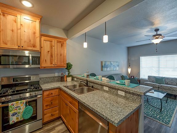 Gourmet-style kitchen Sleek granite countertops, stainless steel appliances, and a layout perfect for cooking or entertaining.