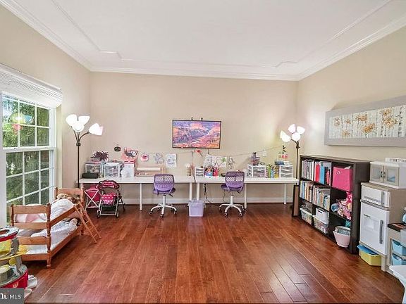 Rare opportunity to own a home in Fox Hollow in Mickleton! Come and see this stunning contemporary home in the heart of town. What a beautifully cared for development and impeccably maintained home! As you enter the home, the first thing that you will notice are the beautiful hardwood floors that run throughout the first floor, as well as the wide open floor plan. Note the large living room, otherwise known as the magnificent playroom! The dining room has crown molding, decorative trim on the ceiling and wainscoting. The downstairs has a neutral color palette and a floor plan suited for entertaining if that is what you desire. The kitchen is amply sized, with a large island, stainless steel appliances, granite countertops, pantry and a stunning breakfast room that looks out over the lovely backyard. The family room has a vaulted ceiling, cozy carpeting and a gas fireplace that has never been used. The main level is made complete with an office, large laundry room and half bath. Head upstairs to 4 amply sized bedrooms. Three of the 4 bedrooms have custom closets! The primary bedroom en suite is very large, with vaulted ceiling, ceiling fan and large walk in closet. The en suite bathroom showcases thoughtful upgrades with quartz countertops and 37? vanity. The other 3 bedrooms are nicely sized and 2 of them contain custom closet upgrades. But wait! We are not done. Head to the finished basement for more hang out and entertaining space AND a full bathroom! So many options down here, plus so much storage space too! And did we mention the beautifully landscaped yard? There is a custom pergola out back on a large paver patio. The pergola has electric and a fan. There is a sprinkler system (with its own meter) to keep your grass looking green and healthy. Did we mention NO HOA! Public water and sewer. Close to schools, parks, and highways for a quick zip to wherever you need to go. Make haste to see this one!